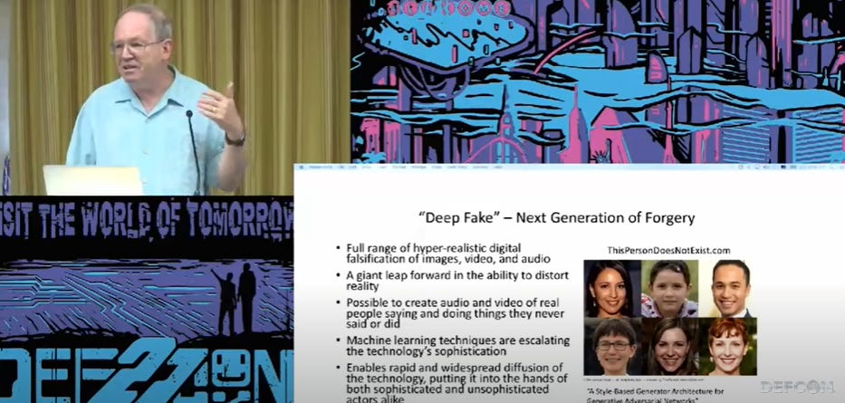 For the US, long engaged in the ‘War on Terror’, social bots became a national security issue worthy of its own investigation when the high risk, high impact Defense Advanced Research Projects Agency (DARPA) and the US Army held a four-week-long competition into the phenomenon in early 2015 as part of its wider Social Media in Strategic Communication (SMISC) initiative led by Dr Rand Waltzman (pictured below at DEFCON 2019).