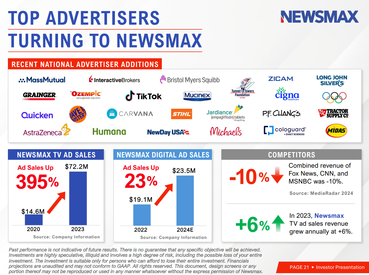 The CEO claimed Newsmax will IPO (on NASDAQ or The New York Stock Exchange) this year or next. The company lost $41.7 million last year, according to its own documents. Ruddy has stated that its revenues could reach $180 million this year.