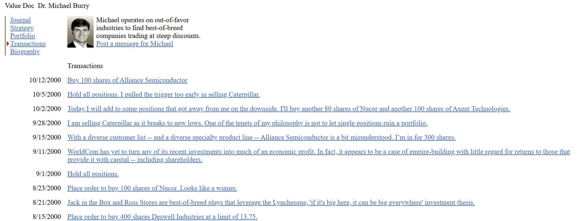 In the 1990s, I published Valuestocks.net, which Forbes twice named “Best of the Web,” and I wrote for Microsoft’s MSN Money as the Value Doc. For many years, my Scion Capital investor letters did all my marketing for me. Cassandra Unchained is a return to the public forum — and man am I excited.