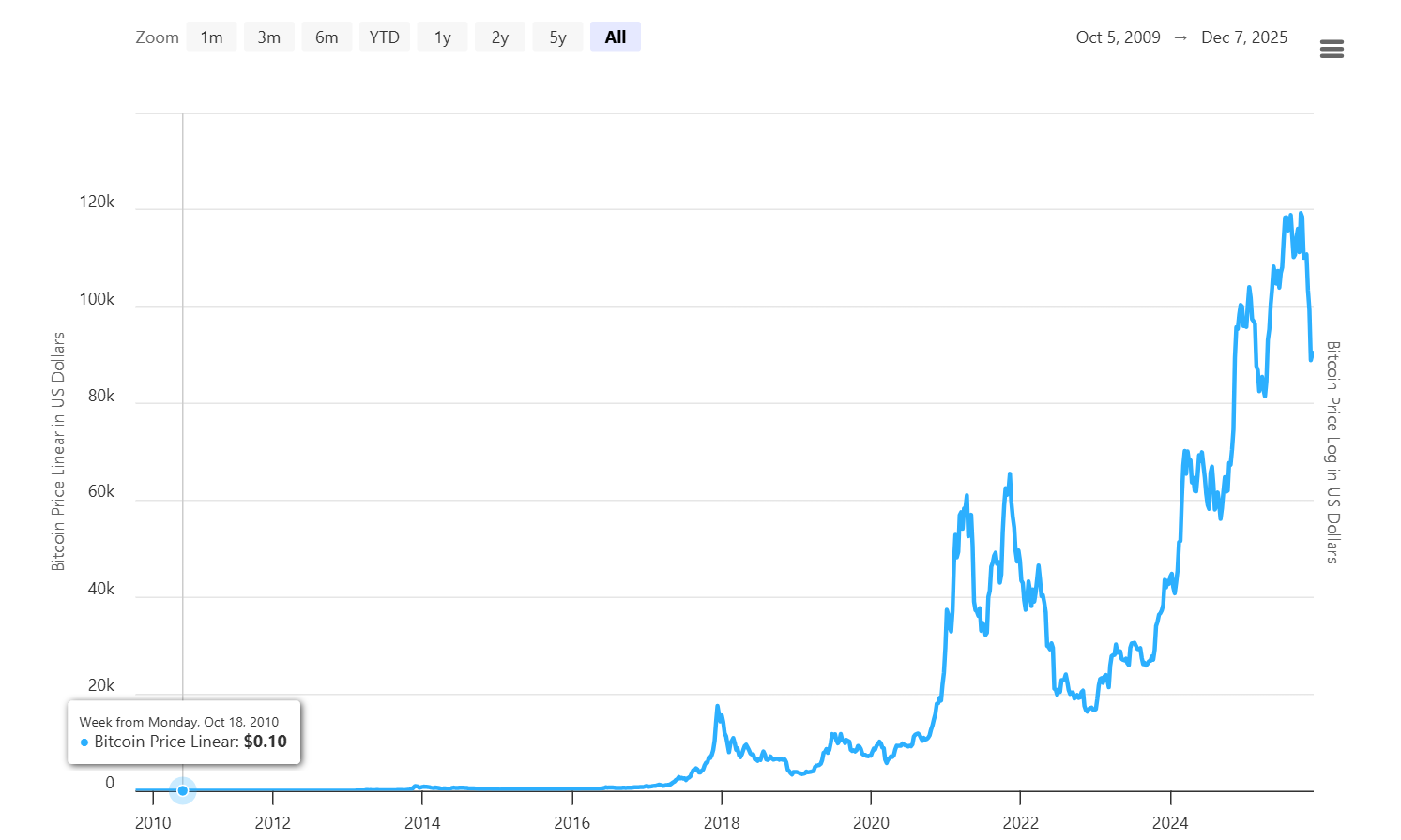At that time, mortgage defaults were hitting the headlines (link), but the Dow Jones Industrial Average still reached a record high in October 2007. In fact, the early 2000s might have served as a more impactful inspiration for Bitcoin.